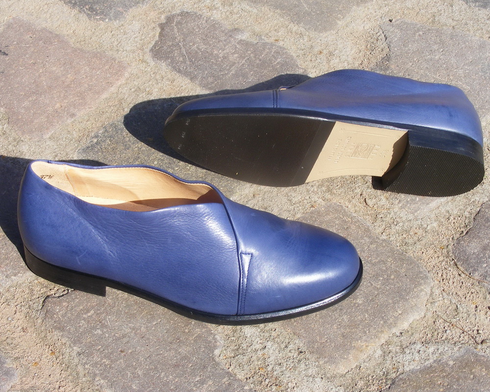 Komfortabler Damenschuh ohne Schadstoffe Bequemer, sportlicher Slipper aus weichem pflanzlich gegerbten Kalbnubukleder, mit Lederfutter und Wanderprofilsohle, asymmetrisch gewickelt, weiche Linien bestimmen die Optik.Dieser Schuh ist auch für Füße mit hohem Spann geeignet, und das eingearbeitete Fußbett aus Naturkork garantiert natürliches Gehen. Der in Deutschland hergestellte Slipper ist in mehreren Farben erhältlich. Die Herausfoderung besteht darin, sich zu entscheiden welche man nimmt.Auslaufmodelle mit kleinen Fehlern, deshalb im Preis reduziert.