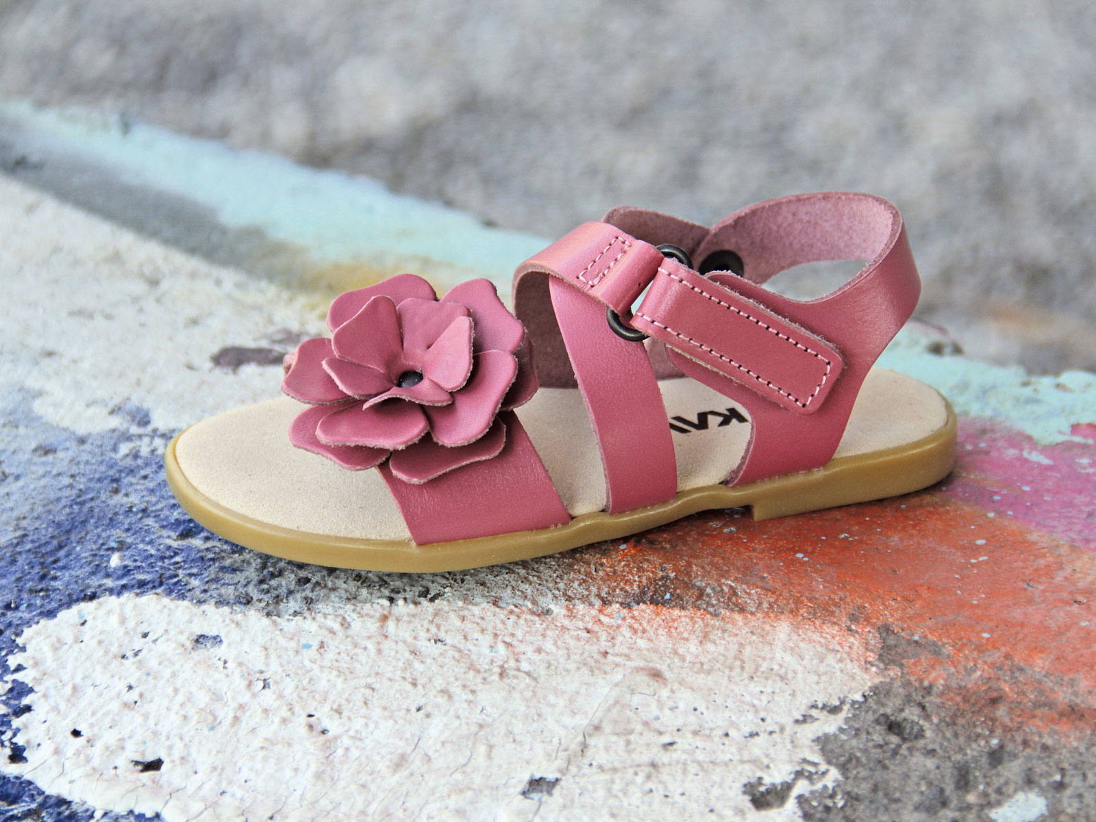 Moderne, schicke Mädchensandale von Kavat. Gut geeignet für Mädchen mit schmalen Füßen. Mit Klettverschluß und weich gepolsterter Leder- Decksohle.Die Außensohle ist aus Gummi und weist ein geriffeltes Profil für einen rutschhemmenden Halt auf.