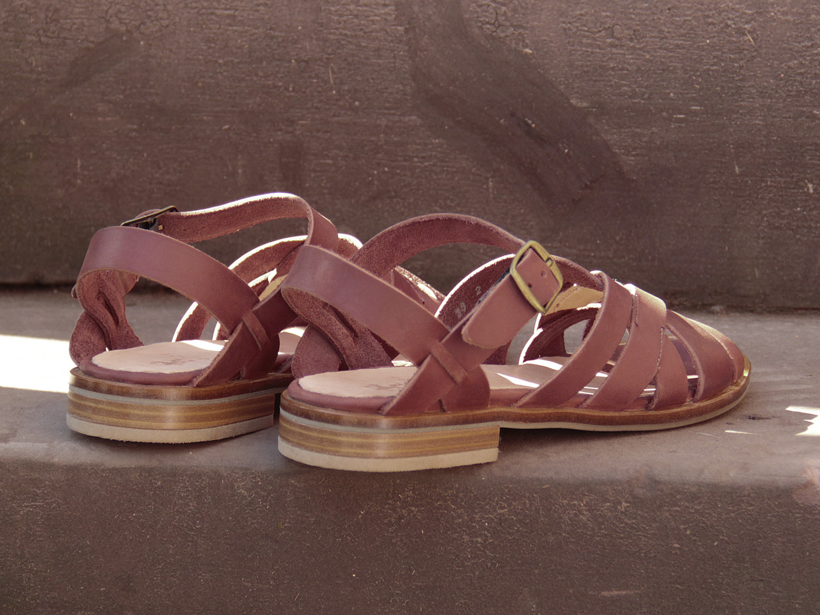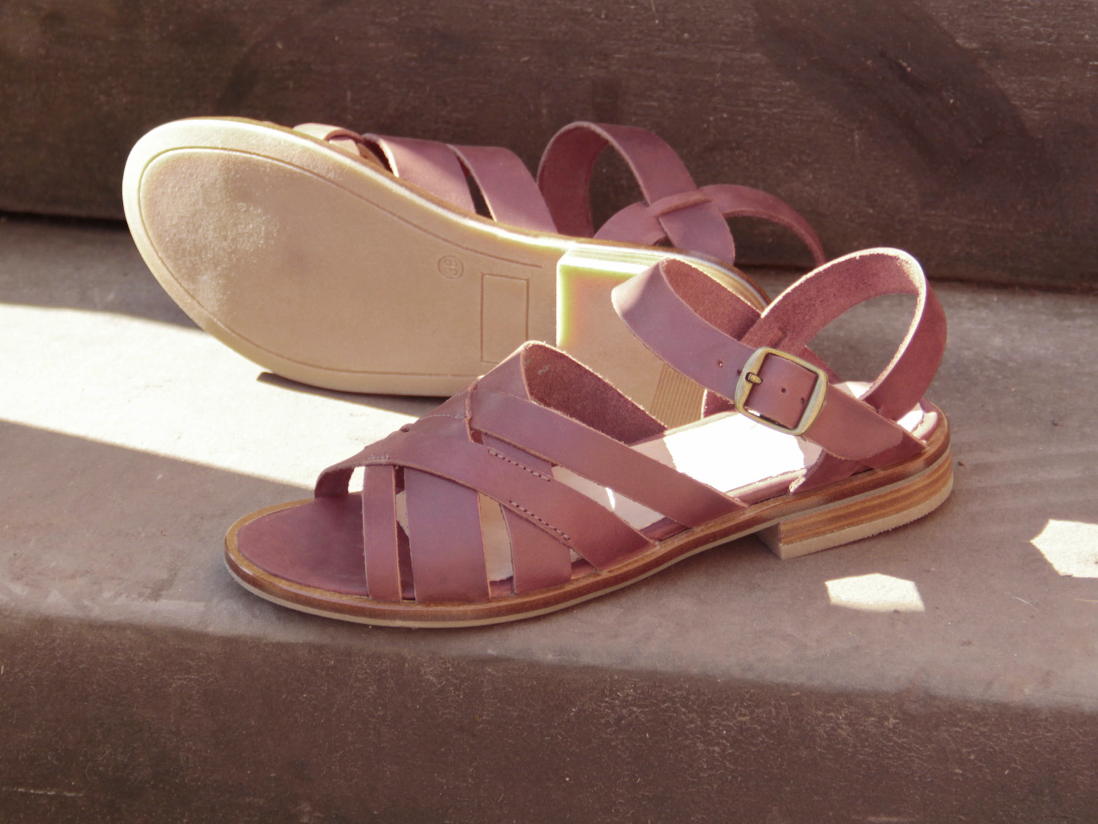 Leicht und unbeschwert: luftige Sandalenform mit gekreuzten Lederriemen und hübschen Ziernähten.