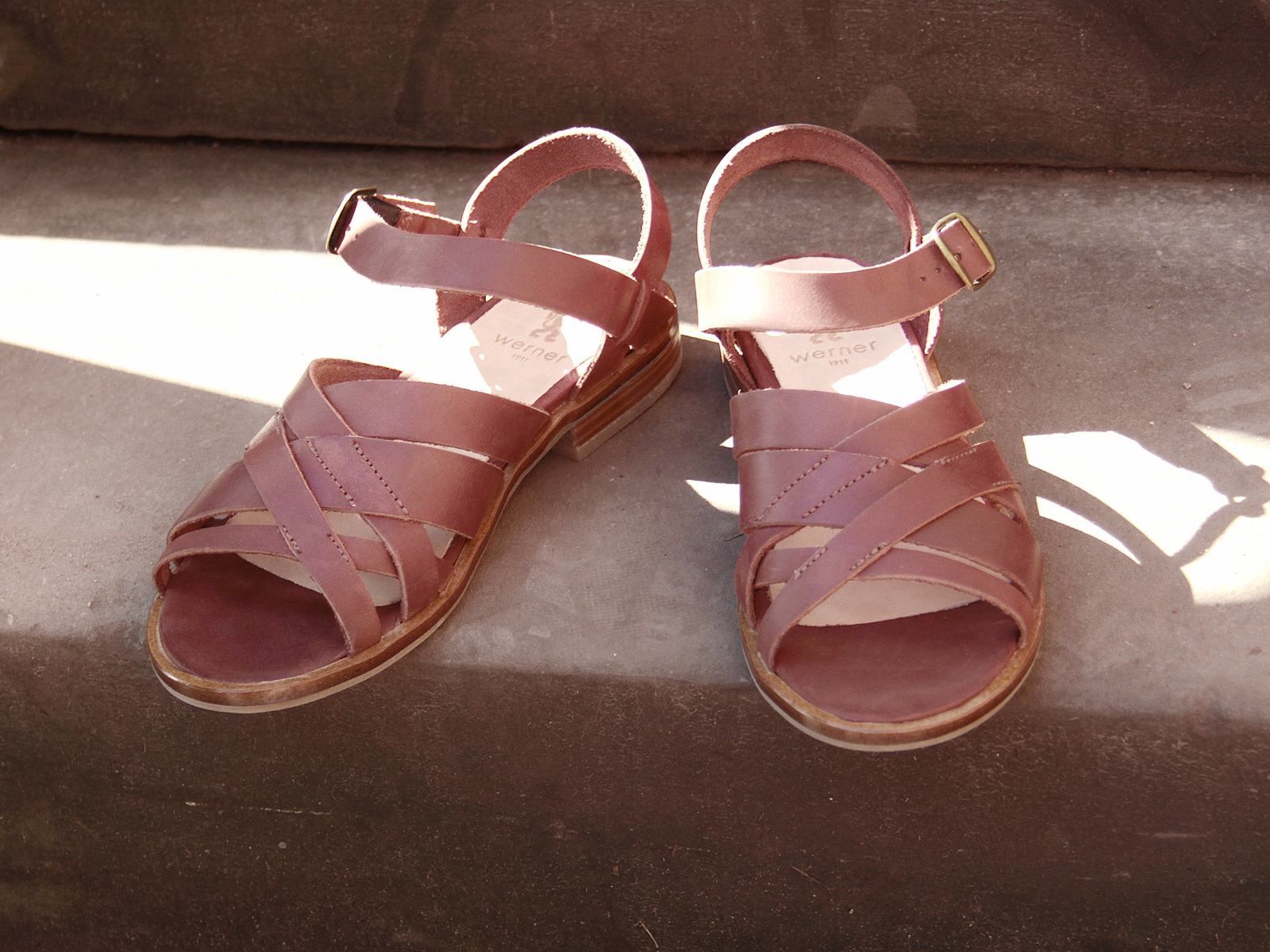Leicht und unbeschwert: luftige Sandalenform mit gekreuzten Lederriemen und hübschen Ziernähten. Eine leichte Polsterung unter der Decksohle sorgt für bequemes Gehen und Stehen, guten Halt gibt das Lederband an der Ferse. Die rutschfeste Laufsohle ist aus Gummi. Das Oberleder ist ein Rindnappaleder, pflanzlich gegerbt und chromfrei und damit auch sehr angenehm auf der Haut. Dehnbar und geschmeidig passt sich das Leder der natürlichen Veränderung des Fußes im Laufe des Tages an. Feuchtigkeitsspeichernd und atmungsaktiv hält es auch an warmen Tagen immer ein angenehmes Klima im Schuh. CALLA wird von dem deutschen Hersteller WERNER produziert. Alle Rohmaterialien stammen aus Deutschland und den europäischen Nachbarländern, was eine gleichbleibend hohe Qualität garantiert und die Transportwege so kurz wie möglich hält.