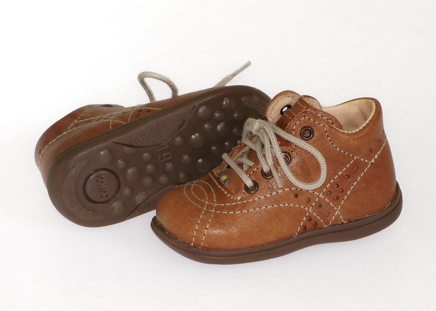Ein perfekter Schuh für unsere Kleinsten. Hergestellt von KAVAT aus feinstem pflanzlich gegerbtem Leder, das heißt frei von Kaliumdichromat und damit auch für empfindliche Kinderhaut geeignet. Einfache Handhabung durch den weit zu öffnenden Einschlupf, sowie hundertprozentiger Sitz aufgrund der höheren Form im hinteren Schuhbereich, machen den Schuh zu etwas besonderem. Ein gepolsterter Schaftrand, verstärkte Hinterkappen, sowie die durchgehende Lederinnenausstattung sorgen für höchsten Tragekomfort. Die anatomische Form der TR-Gummisohle, speziell abgestimmt auf den Kinderfuß geben entsprechenden Halt für natürliches Gehen. Ausgestattet mit dem offiziellen öko-Label der europäischen Union. Restbestände: Verkauf nur solange der Vorrat reicht.