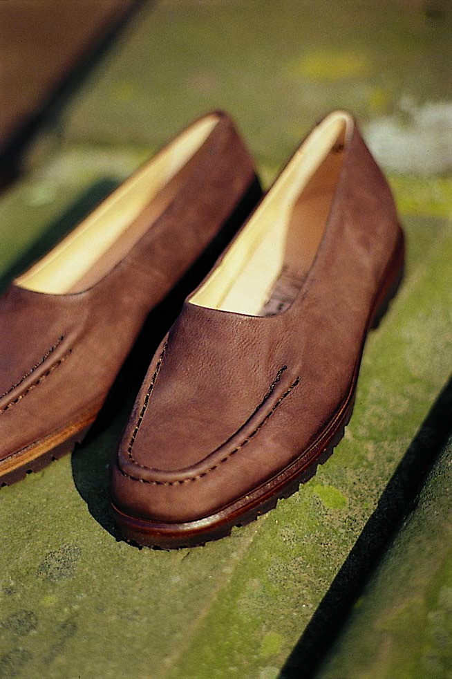 Komfortabler Damenschuh ohne Schadstoffe Bequemer, sportlicher Slipper aus weichem pflanzlich gegerbten Kalbnubukleder, mit Lederfutter und Wanderprofilsohle, asymmetrisch gewickelt, weiche Linien bestimmen die Optik.Dieser Schuh ist auch für Füße mit hohem Spann geeignet, und das eingearbeitete Fußbett aus Naturkork garantiert natürliches Gehen. Der in Deutschland hergestellte Slipper ist in mehreren Farben erhältlich. Die Herausfoderung besteht darin, sich zu entscheiden welche man nimmt.Auslaufmodelle mit kleinen Fehlern, deshalb im Preis reduziert.