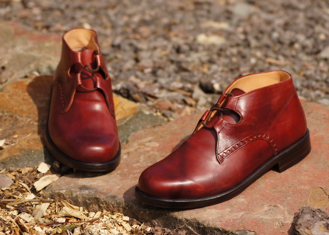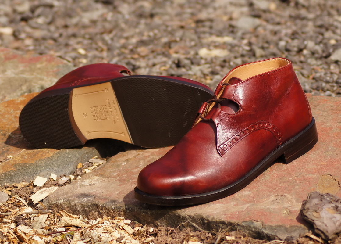 Sehr schöner, halbhoher Schnürschuh aus weichem Kalbnappaleder, mit Lederfutter, einer Gummisohle mit leichtem Profli.