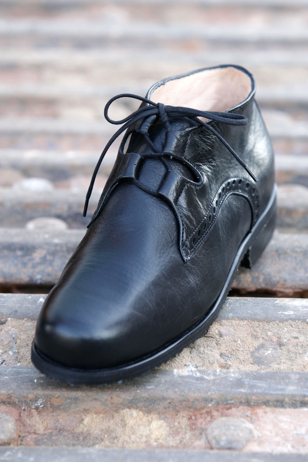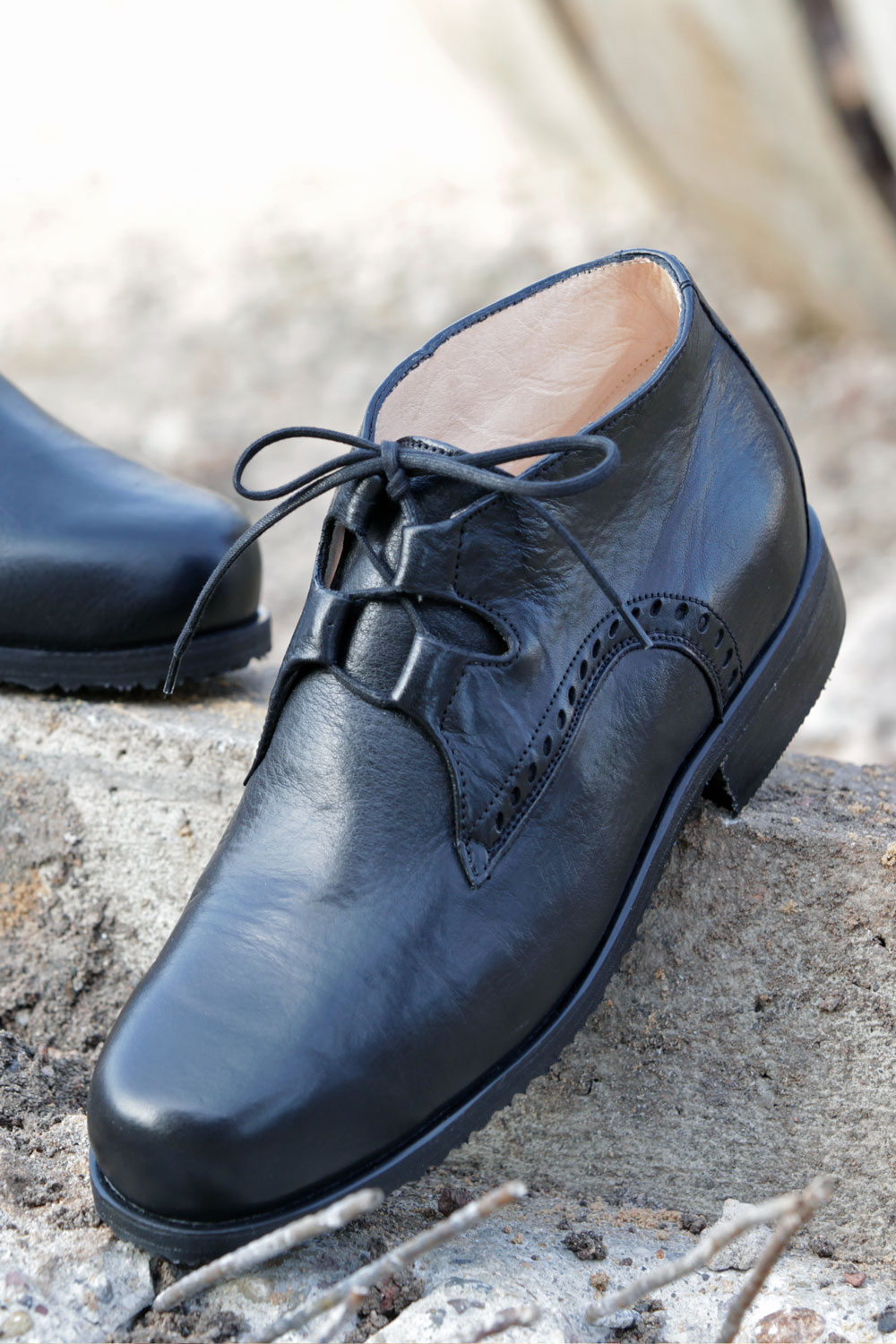 Sehr schöner, halbhoher Schnürschuh aus weichem Kalbnappaleder, mit Lederfutter, einer Gummisohle mit leichtem Profli.Ein Schuh für viele Gelegenheiten, klassiche Form, schlichtes und elegantes Design. Und dennoch sehr bequem mit einem auswechselbaren Korkfußbett für natürliches Gehen und Stehen.