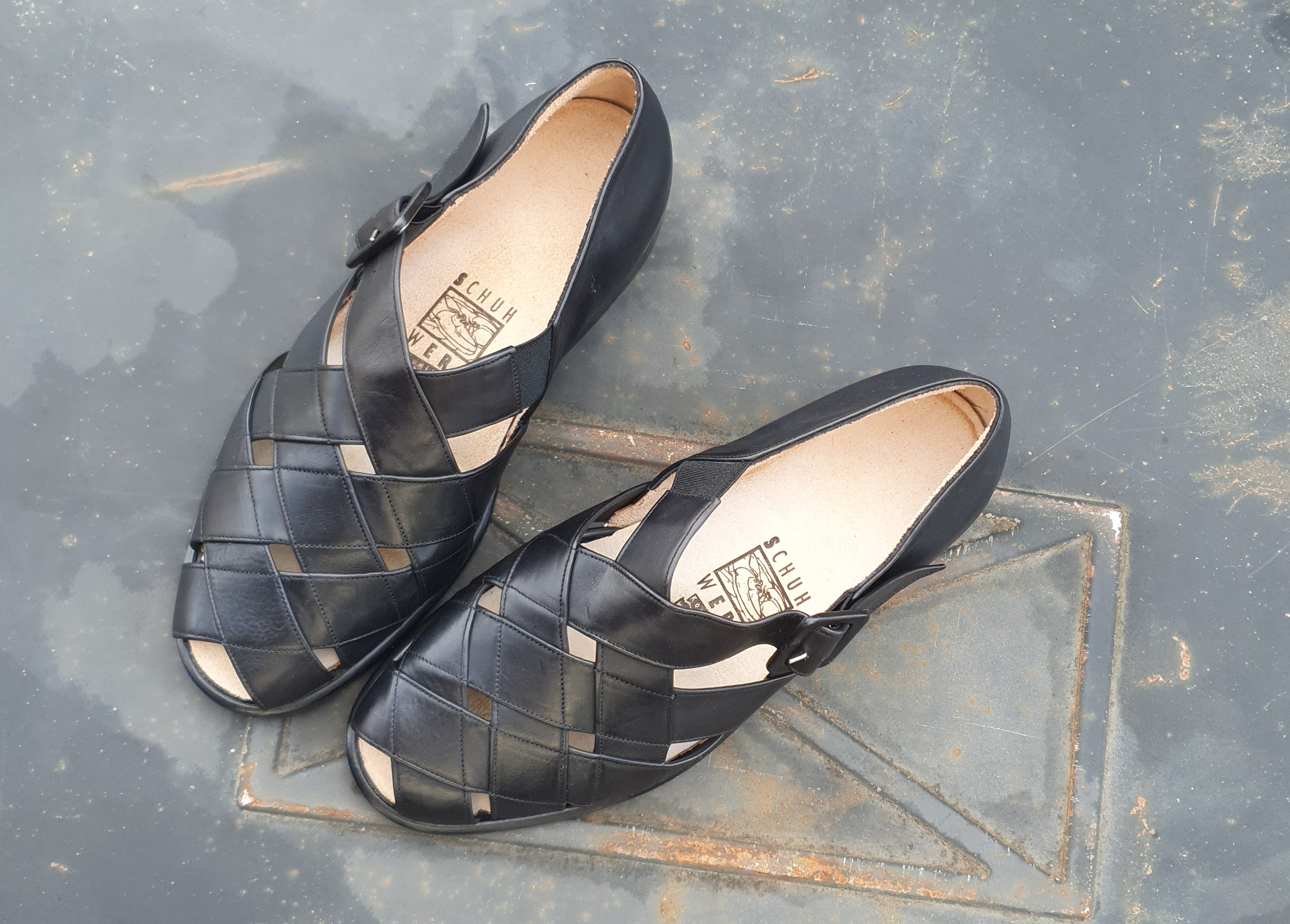 Leicht und unbeschwert: luftige Sandalenform mit gekreuzten Lederriemen und hübschen Ziernähten. Eine leichte Polsterung unter der Decksohle sorgt für bequemes Gehen und Stehen, guten Halt gibt das Lederband an der Ferse. Die rutschfeste Laufsohle ist aus Gummi. Das Oberleder ist ein Rindnappaleder, pflanzlich gegerbt und chromfrei und damit auch sehr angenehm auf der Haut. Dehnbar und geschmeidig passt sich das Leder der natürlichen Veränderung des Fußes im Laufe des Tages an. Feuchtigkeitsspeichernd und atmungsaktiv hält es auch an warmen Tagen immer ein angenehmes Klima im Schuh. CALLA wird von dem deutschen Hersteller WERNER produziert. Alle Rohmaterialien stammen aus Deutschland und den europäischen Nachbarländern, was eine gleichbleibend hohe Qualität garantiert und die Transportwege so kurz wie möglich hält.