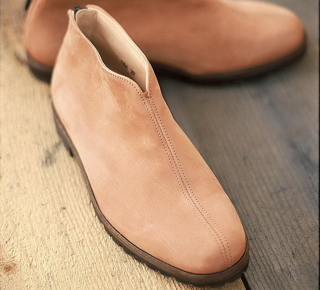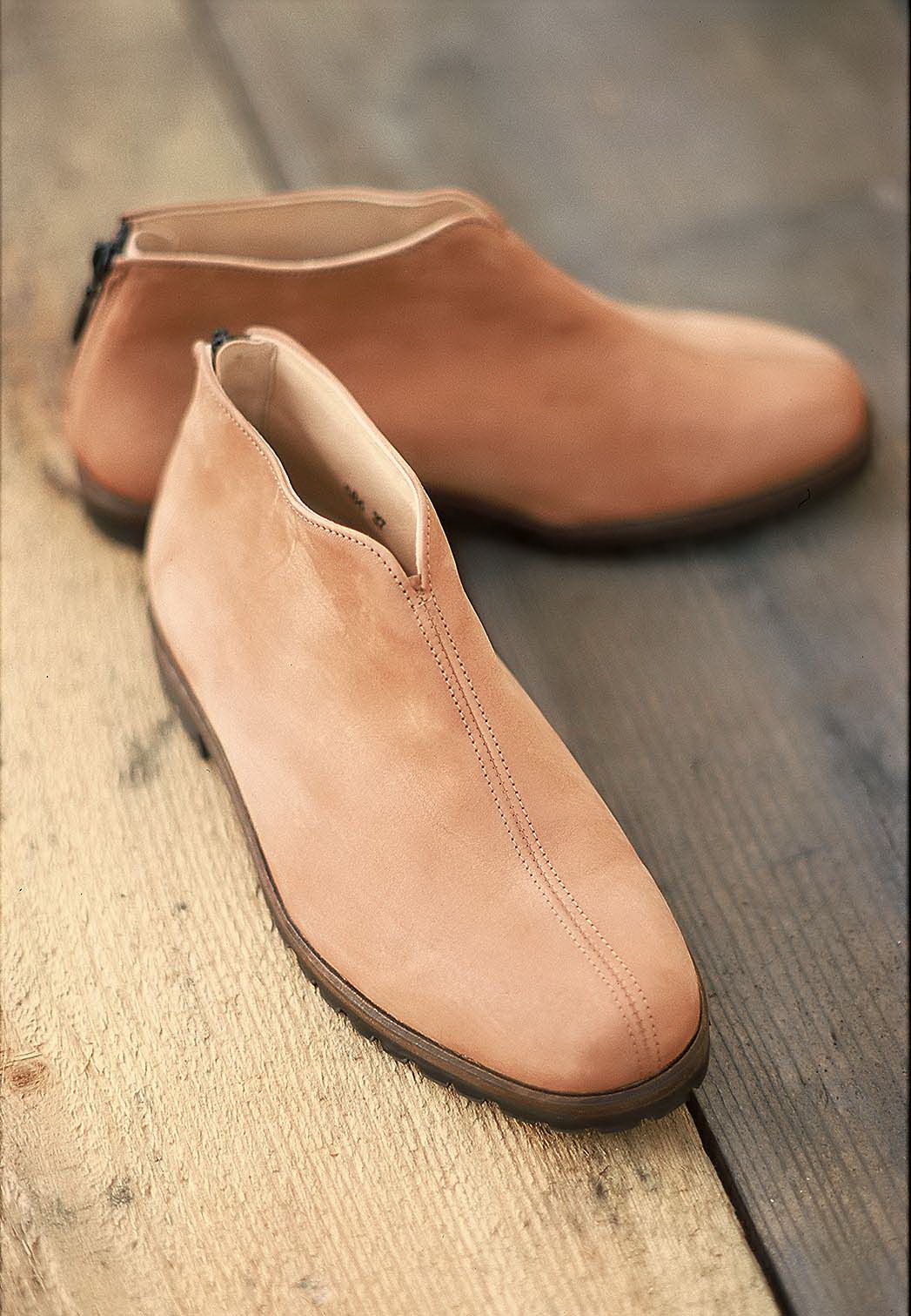 Superbequemer, etwas höherer chromfrei gegerbter Schuh, mit auffallend schönen Details: der Fersenreißverschluß und die Mittelnaht.