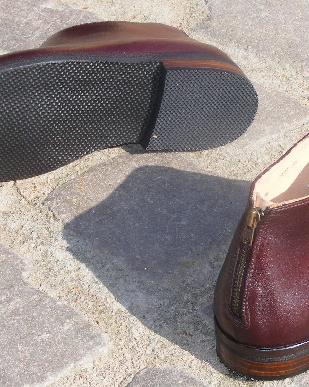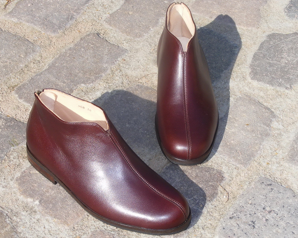 Ein etwas höherer Schuh mit auffallend schönen Details: der Fersenreißverschluß und die Mittelnaht.