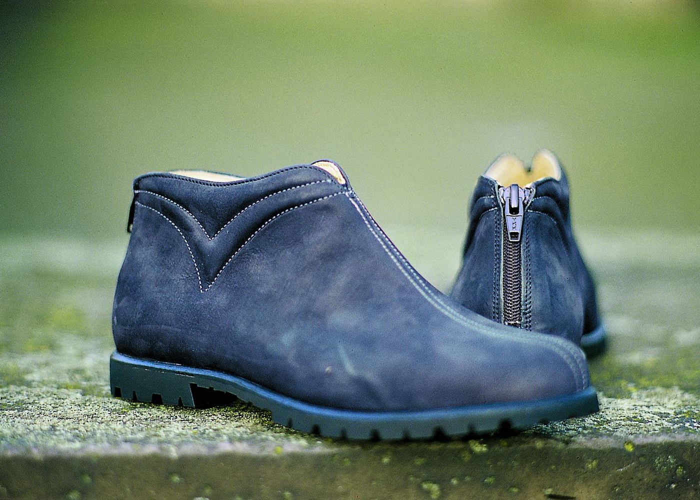 Superbequemer, etwas höherer Schuh, mit auffallend schönen Details: der Fersenreißverschluß und die Mittelnaht.