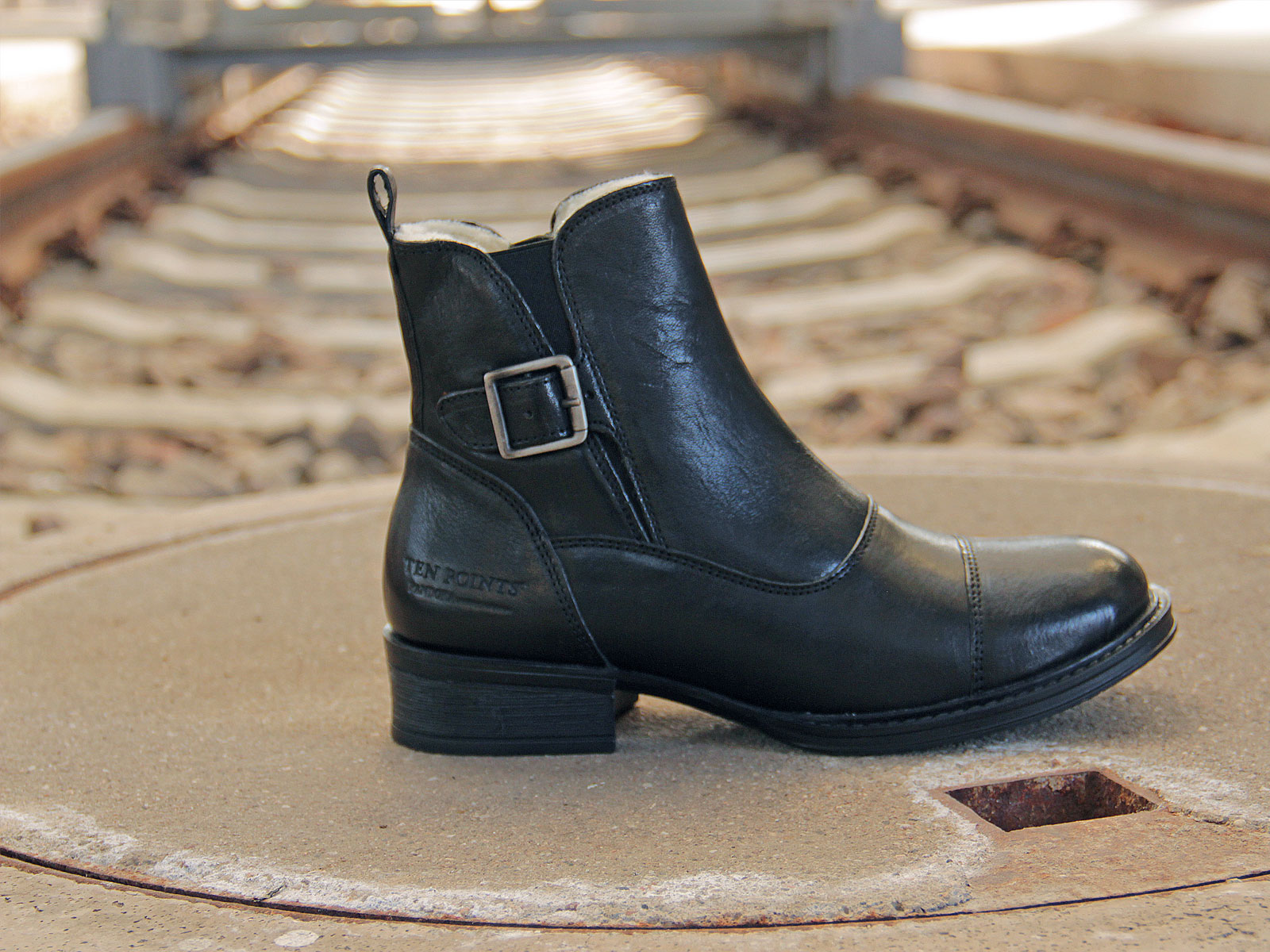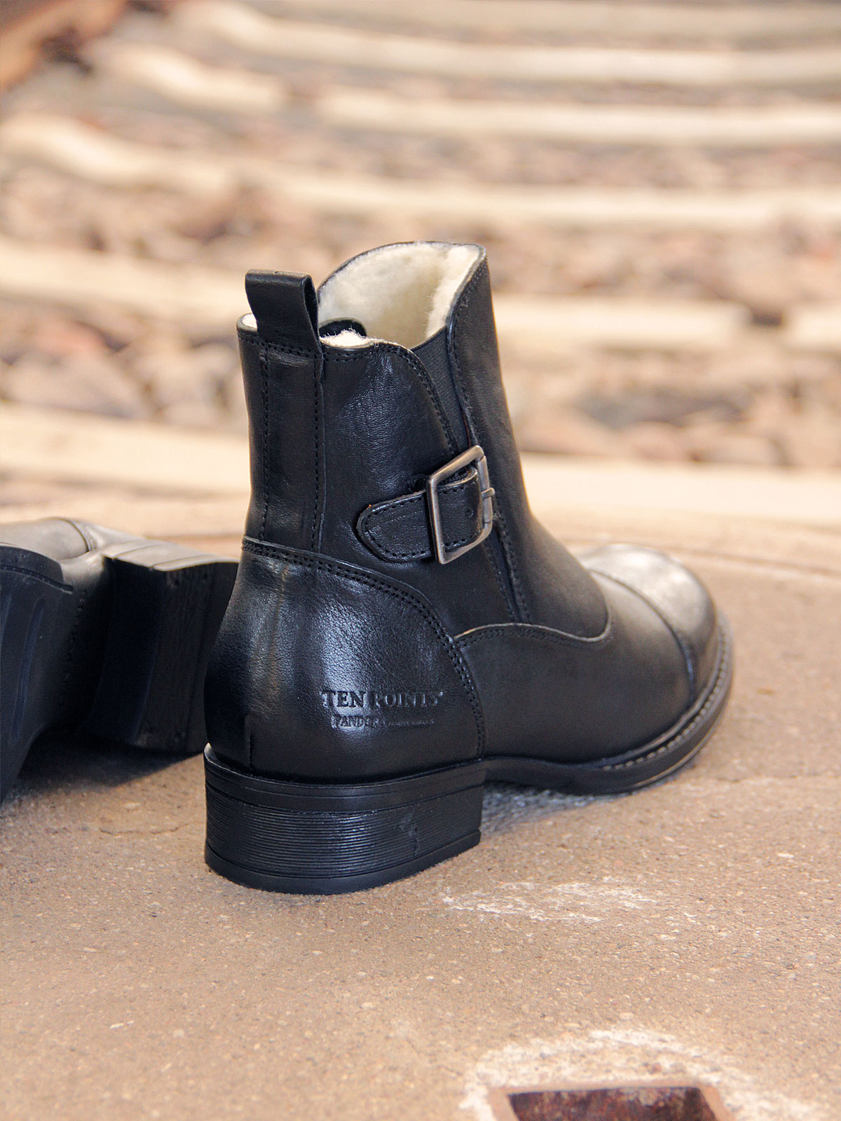 Nachhaltige Schuhe aus pflanzlich gegerbtem Naturleder Bequeme, warm gefütterte Stiefelette aus dem Ökoprogramm von Ten Points. Auch mit dem neuen Herbstprogramm schafft der schwedische Hersteller wieder sehr entspannt die Verbindung von Eleganz und nordischer Lässigkeit, von modernem Design mit zeitloser Optik. SILJE ist aus pflanzlich gegerbtem Glattleder. Für den besonderen Look von Struktur und Glanz wird das Leder in verschiedenen Techniken gewachst und gebürstet. Die Verarbeitung ist hochwertig, mit schönen Details und prägnanten Ziernähten. Die gepolsterte Innensohle ist mit weichem Futterleder bezogen, das Weblammfutter hält die Füße wohlig warm und sorgt dabei für ein atmungsaktives Klima im Schuh. Eine rutschhemmende Laufsohle aus Gummi gibt den nötigen Halt auch an ungemütlichen Herbst und Wintertagen. Die Absatzhöhe ist 3,5 cm. Ten Points Schuhe werden in Schweden entworfen und nachhaltig und unter fairen Bedingungen in Portugal gefertigt. Das Label steht für hochwertige Schuhmacherkunst mit Tradition, verbindet Funktionalität mit viel Komfort und setzt auf langlebige Materialien.