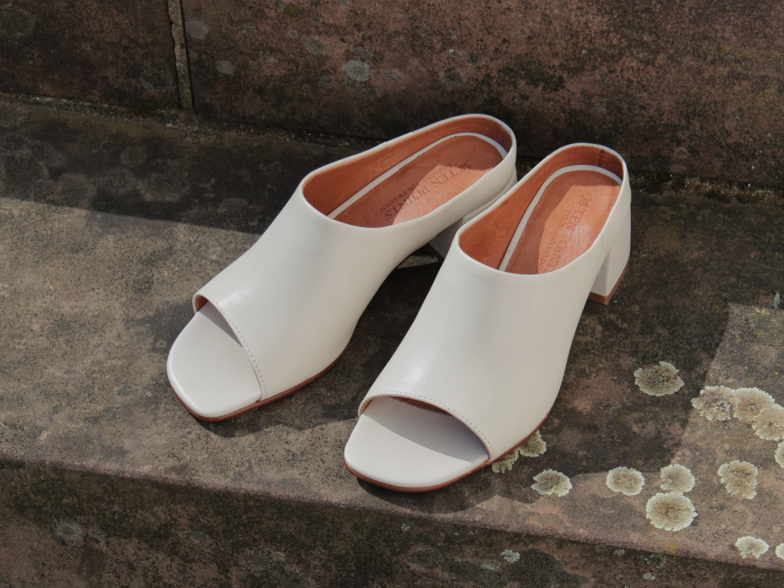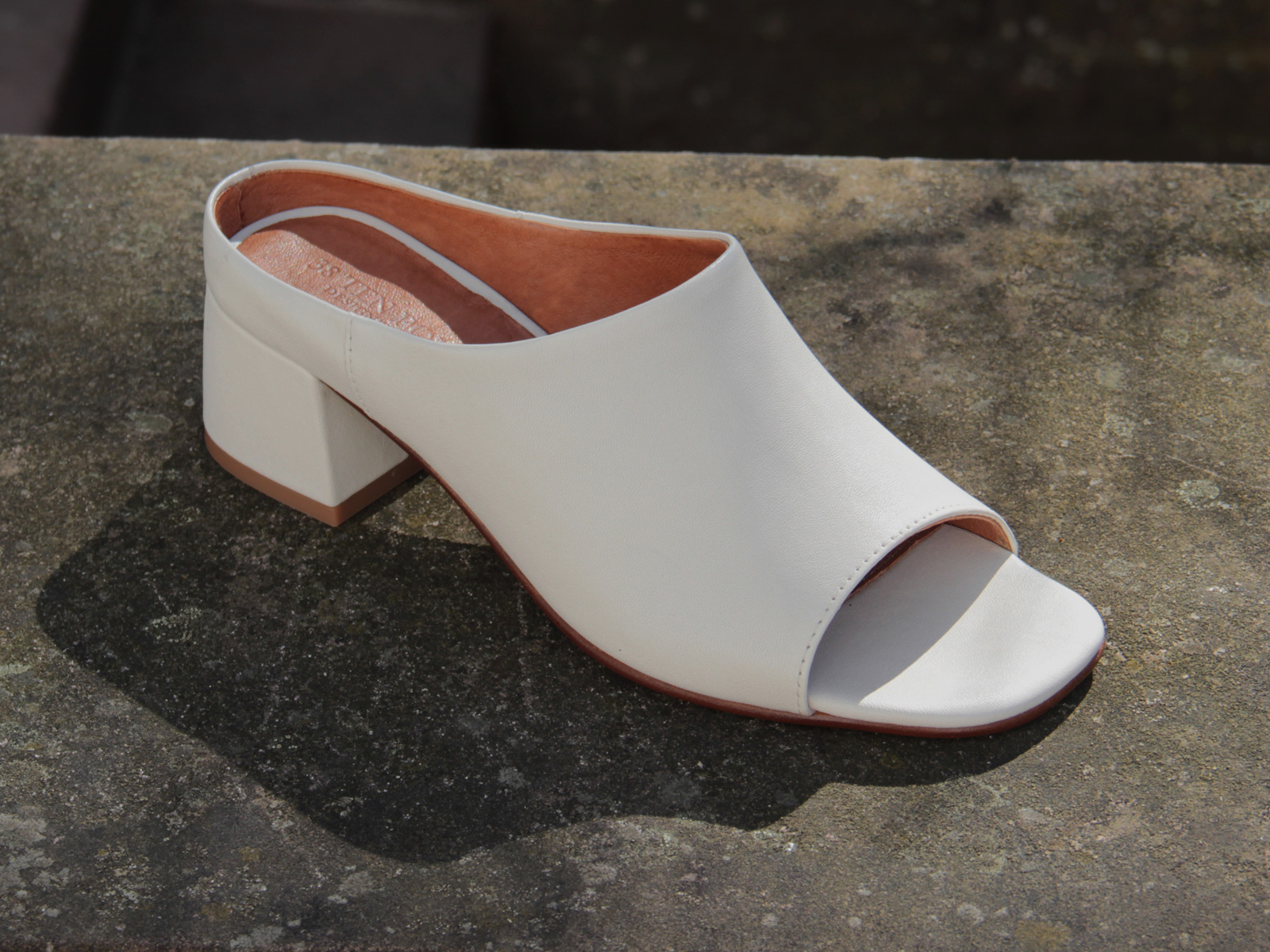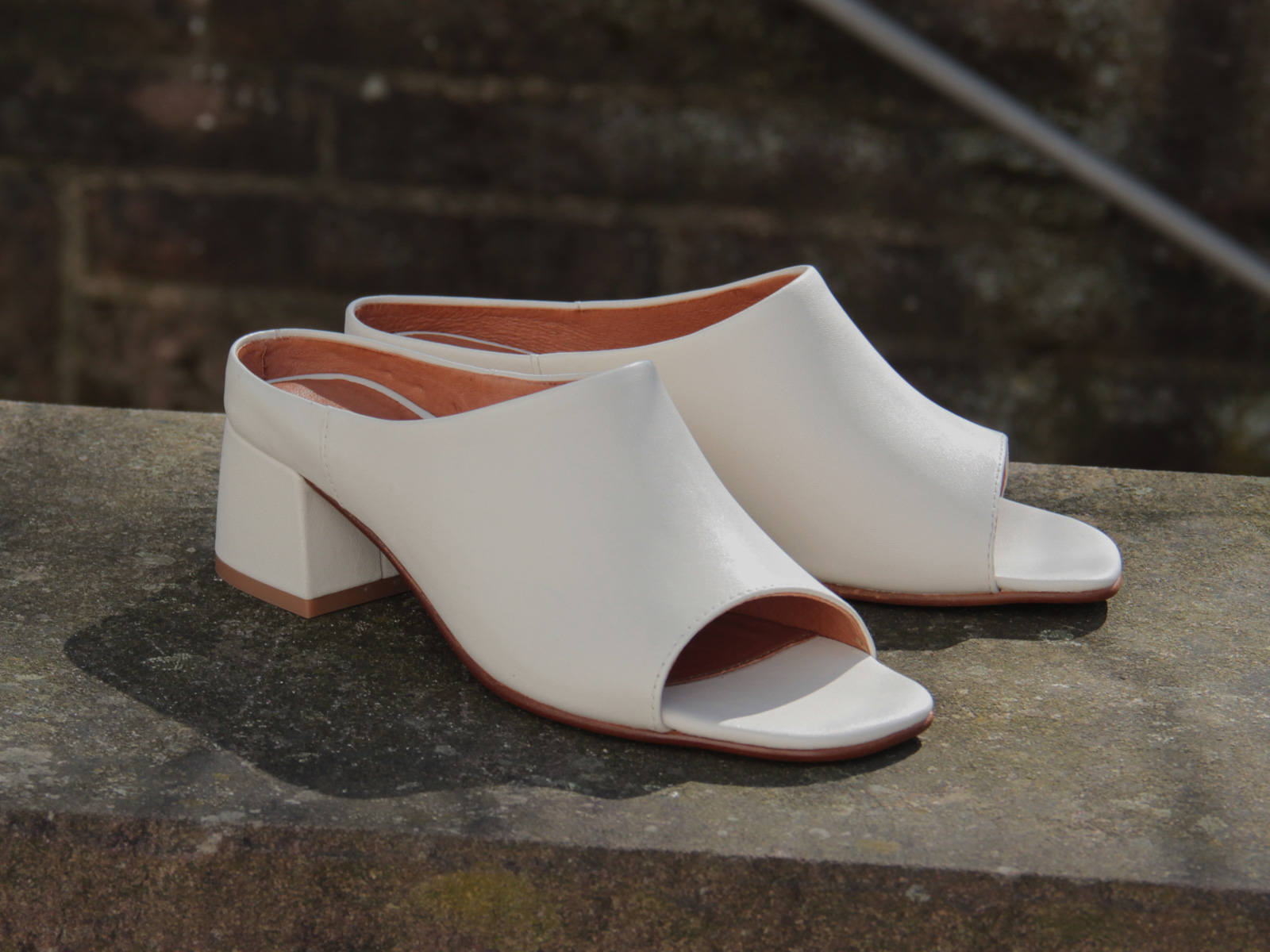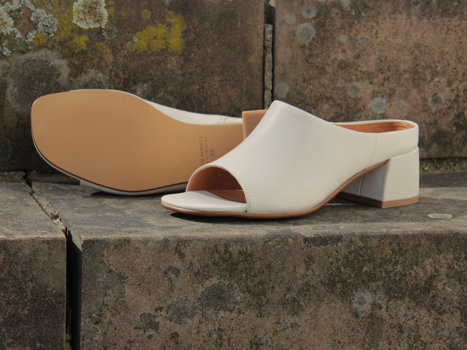 Pantoletten mit Blockabsatz sind in diesem Sommer sehr «en vogue» zu schmalen Röcken oder Hosen mit geradem Bein. Ein besonders schönes Modell ist diese Biopantolette in halbgeschlossener Form von Ten Points, die den Füßen viel Freiheit lässt und gleichzeitig guten Halt gibt.